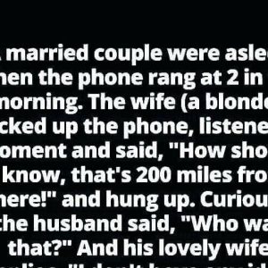 A married couple was fast asleep when the phone shattered the silence around 2 a.m. The wife, a blonde, groggily reached over to answer it. She listened…